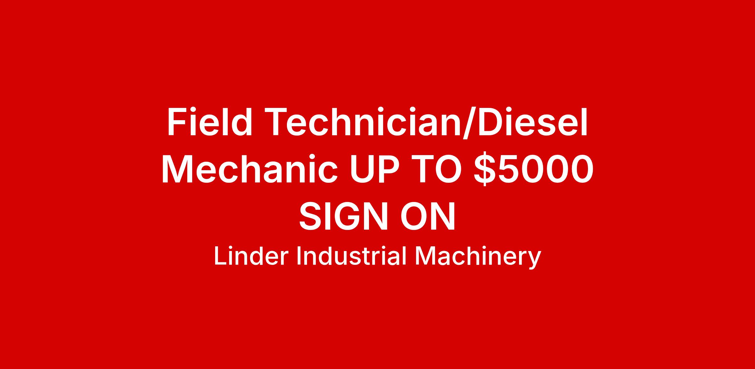 Field Technician/Diesel Mechanic UP TO $5000 SIGN ON