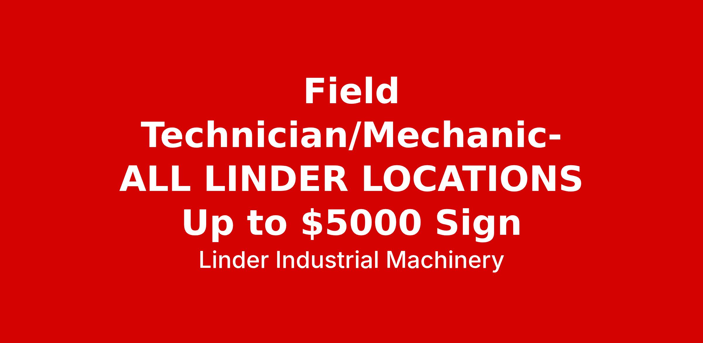 Field Technician/Mechanic- ALL LINDER LOCATIONS Up to $5000 Sign