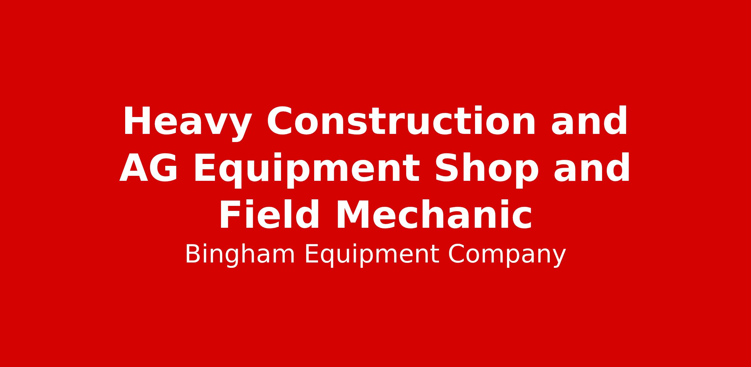 Bingham Equipment Company - Heavy Equipment Shop and Field Mechanic