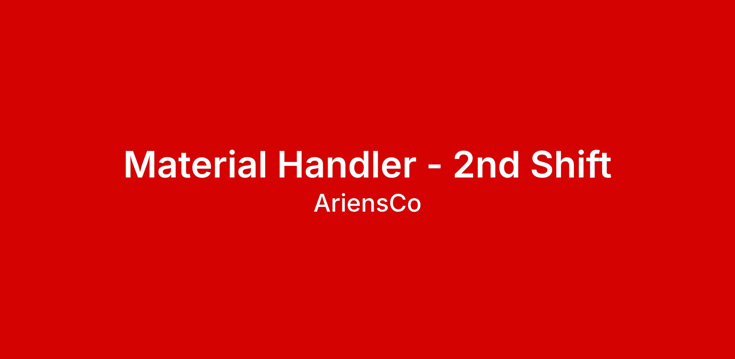 AriensCo is seeking motivated and experienced Material Handlers in Brillion, WI. Pay starts at $20/hour + $2.00 shift premium (+ $2,000 sign on bonus). Schedule: Monday–Thursday (4x10), 2:30PM–12:30AM. Responsibilities include handling materials for outdoor power equipment, operating equipment, maintaining standard work, assisting team members to meet production goals, and recording information per standard work. Qualifications include ability to communicate effectively, stand 10 hours/day, lift up to 35 lbs, wear PPE, and work as part of a team.