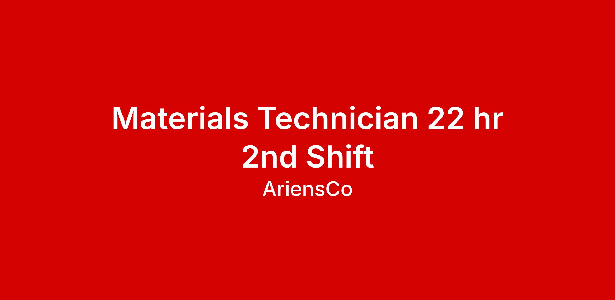 Materials Technician 22 hr 2nd Shift